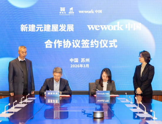 春启新程,3月5日,新建元建屋发展与WeWork中国举行合作协议签约仪式,双方以建屋发展旗下建屋大厦为载体,共同打造苏州工业园区湖东CBD高品质创新办公空间。