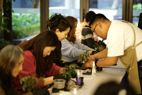 在“手作”环节,活动参与者纷纷化身“园艺师”,沉浸在方寸之间的山水营造中。“以前只觉得盆景好看,今天自己上手才知道,弯一根枝条、铺一块苔藓都有这么多讲究。”市民姚女士感叹。大家交流着造型心得,有的追求飘逸,有的偏好稳重。毛凤伟穿梭课堂间,不时出手点拨,原本平平无奇的植株,经他一两处调整,瞬间便有了古意。